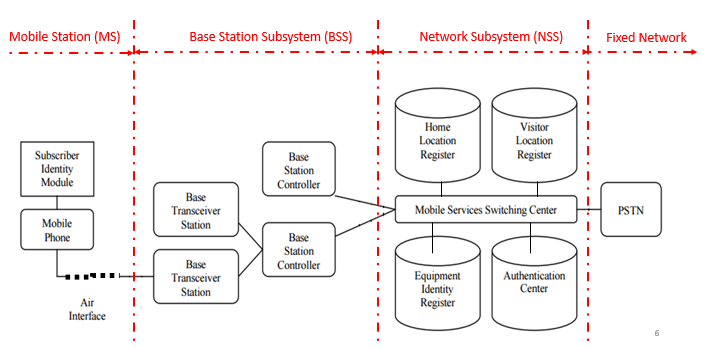 | Base Station Controller (BSC) | Manages radio resources and handovers for multiple BTSs |